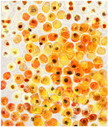 is then shaped and refined. Some are bare plaster; others are covered in encaustic or acrylic. Whereas the digital prints are