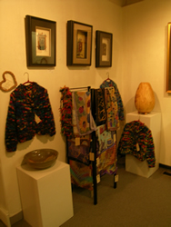 Anne Scarpa McCauley - baskets www.honeysucklebaskets.com Lisa Mosser - fused glass & jewelry Chuck Mosser - wood turner Sally Craig - wearable art/sweaters Lee Fox - fabric art/purses Traute Leemann - fabric art/silk Amy Schwartz Potter - ceramics www.amypotter.com Elizabeth Sawyer - porcelain easawyerclay@netscape.net Marcie Evans - Gourd Art Tamara Lee Little - fiber artist www.leelittlecollection.com Connie Svindland - jewlery artist