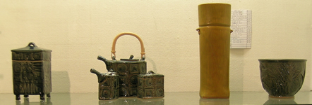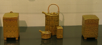My most recent work is mainly influenced by textiles. The attention to detail in batik and quilted fabrics has always amazed me. I have tried to incorporate those qualities into my work. I throw fairly simple forms on the potter's wheel, then attache "patch work" slabs of clay. I also create slab-build containers impressed with soft low relief designs that have a "quilted" feel to me. I use carved linoleum blocks to impress my clay slabs to create my "quilted" textures. www.tashamckelvey.com