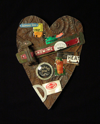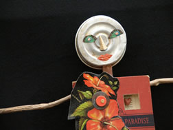 She repurposes rusted springs, tin cans & globes, vintage Bakelite toys, pulp fiction paperbacks—to name a few.