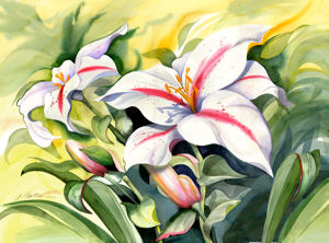 Fine technical mastery of watercolor and oil mediums is evident in the precise brushstrokes of Hautman’s colorful paintings. With sensuous large scale flowers, enticing doorways and delectable grapes, Amy vividly portrays the emotional power of nature.