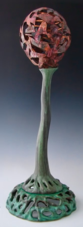 My pottery is based on observations of the flow and contrast of natural line and form in plants, flame and stone. Primary artistic influences have been medieval book illuminations, Celtic knot designs, Old Japanese Tamba pottery, and the designs of the Art Nouveau and Modernist periods. I keep returning to the clay sculptures of Ruth Duckworth, the bronzes of Alphonse Mucha, the stone sculptures of Jean Arp, the paintings of Paul Klee, and the pottery of George Ohr.