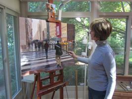 “For me, each painting is a journey into the soul,” Faye says, “ an opportunity for me to explore my own reactions to the color and light I observe in everyday life. I see the most ordinary occurrence and think how wonderful that would look as a painting, from the simplest gesture of a young girl putting on her shoe in Paris, to a group of seniors standing on a street corner in Italy, the world is a living canvas.” Faye’s paintings have been featured in American Art Collector, Art of the West, Western Art Collector Magazines, newspaper articles and in some of the top juried fine art shows in the United States. She was selected to be the Featured Artist for the 2008 Nansemond Suffolk Art Show. Awards include Best in Show for painting at An Occasion for the Arts in 2009 and Best in Show at the Norfolk Academy Art Show that same year. She was recently commissioned to do a large piece for the main lobby of the Ritz Carlton Hotel in Northern Virginia. Her paintings are held in private and corporate collections throughout the U.S. and abroad.